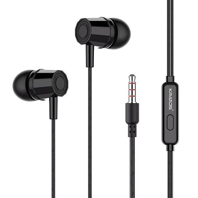 Kratos E02 Black Wired Earphones with 3.5mm Jack in-line Mic Control for Clear Calling & Music, Multi-Functional Controller,Sweat Resistant Description Reviews (0) ₹149.00 Add to cart